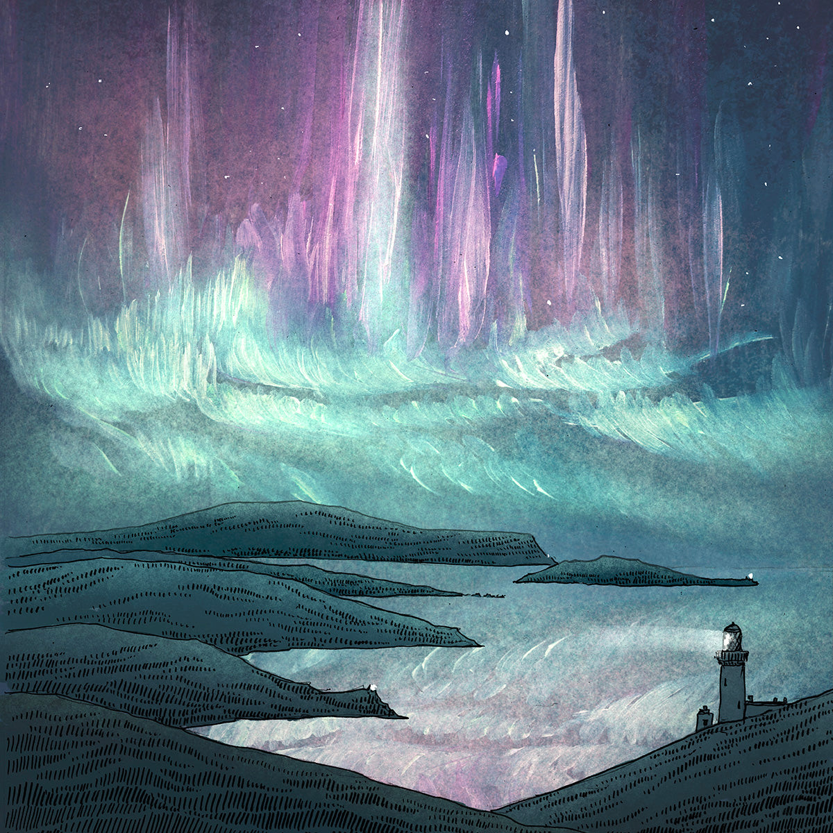 Life right now is a mix of time in my home studio in Glasgow, and out on the road around Scotland with my family in our wee campervan. My wife is a remote and rural GP so her work takes us to the furthest reaches and wildest shores of the country, where I join to look after our wee girl, draw, and soak up the inspiration Scotland has to offer.