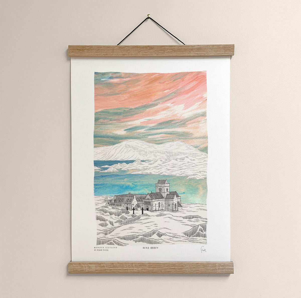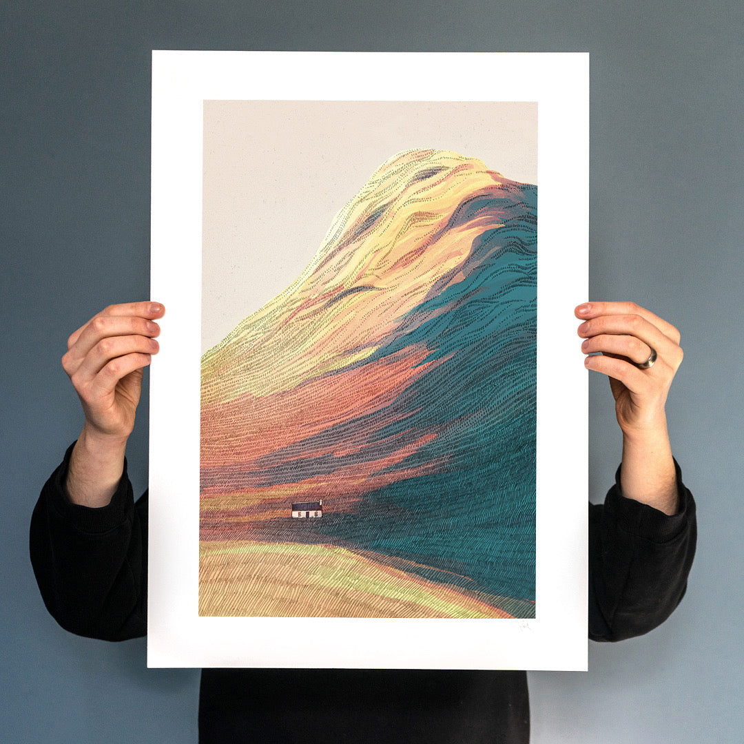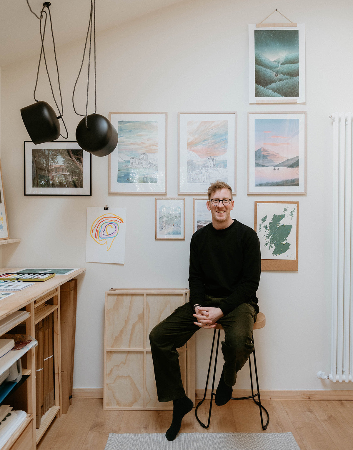 Life right now is a mix of time in my home studio in Glasgow, and out on the road around Scotland with my family in our wee campervan. My wife is a remote and rural GP so her work takes us to the furthest reaches and wildest shores of the country, where I join to look after our wee girl, draw, and soak up the inspiration Scotland has to offer.