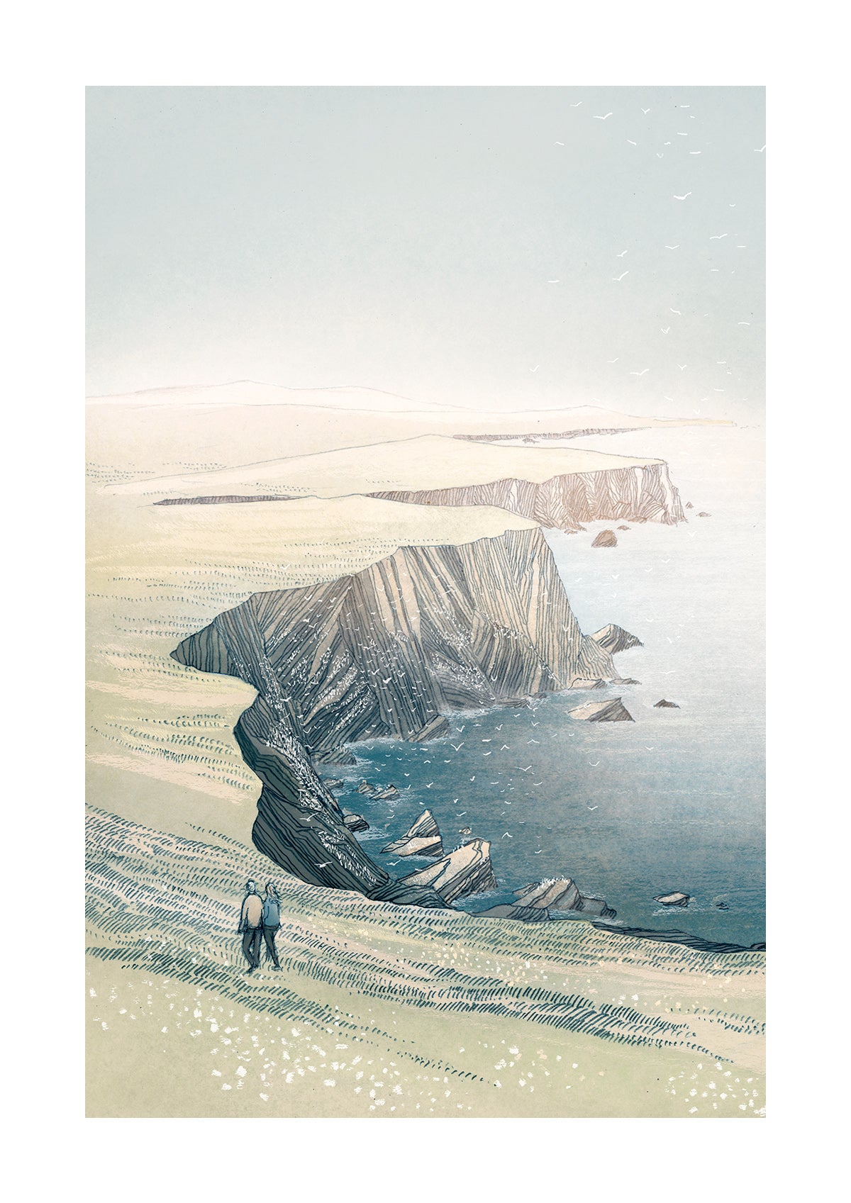 Ness features in a lot of Scottish place names, meaning headland. This view is based on memories of walking the cliffs and seeing gannet colonies at Hermaness, a breathtaking nature reserve on Unst, the most northerly Shetland Isle.